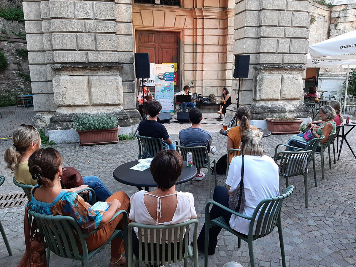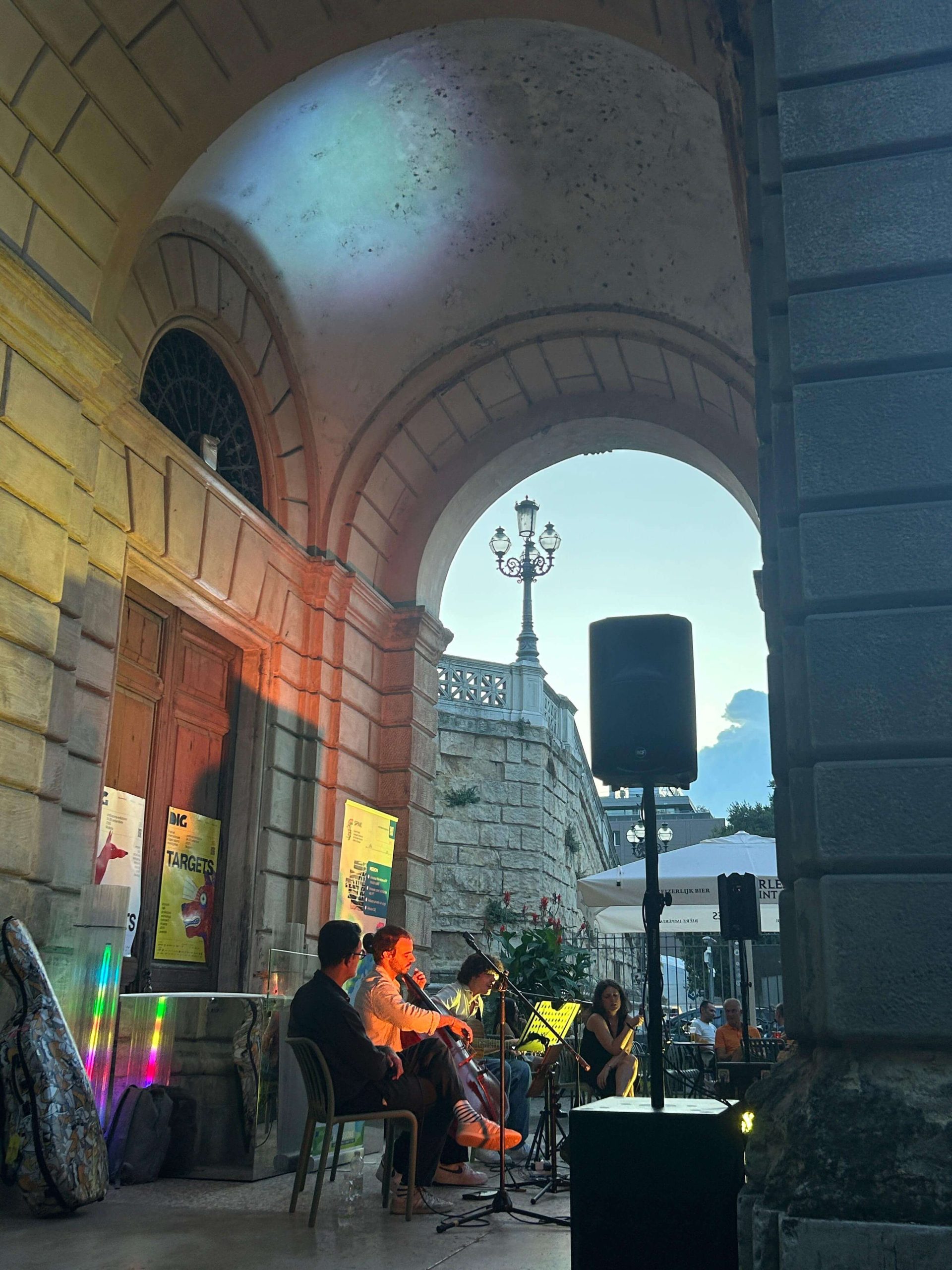 The first was “Dolcemente viaggiare (Travelling Sweetly)”, a musical performance hosted at the Ex.Dynamo bike station. Through music and storytelling, the performance encouraged reflection on the social and symbolic value of travelling and on the evolution of transport modes over time, highlighting their environmental and cultural implications.